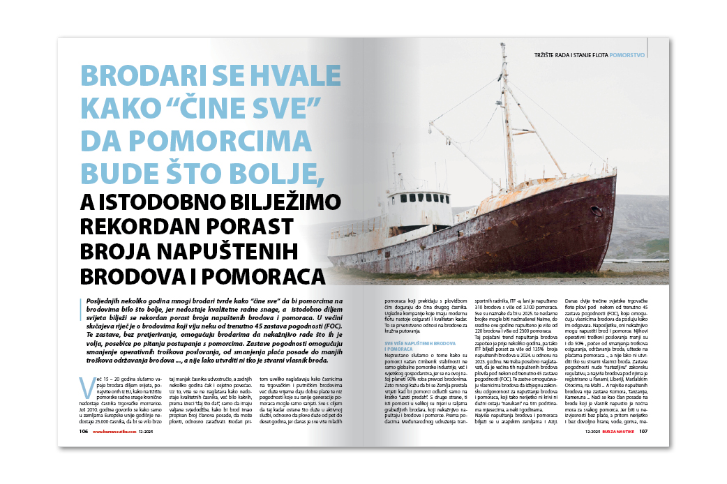 Posljednjih nekoliko godina mnogi brodari tvrde kako "čine sve" da bi pomorcima na brodovima bilo što bolje, jer nedostaje kvalitetne radne snage, a istodobno diljem svijeta bilježi se rekordan porast broja napuštenih brodova i pomoraca.