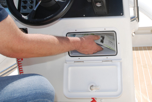 Mali pretinac za spremanje stvari koje moraju ostati suhe je odmah ispod komande motora, praktično i pristupačno.
