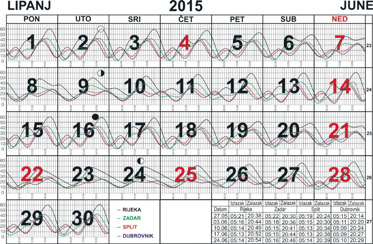 Prosinac 2016.Tablice morskih mijena Jadranskog mora za 2016. godinu, istočna obala - Hrvatski hidrografski institut, Split 2014.Visine voda prikazane su u cm iznad... BN 183