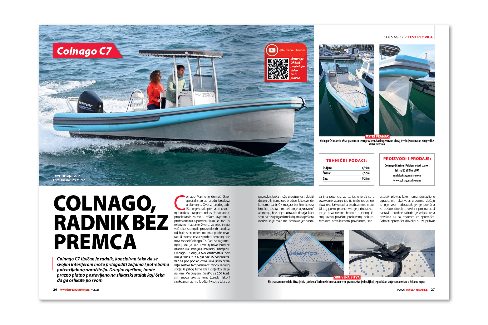 Ako je neka riječ koju dobro ide uz Colnago brodice onda je to „Radno”. Colnago C7 je radni gumenjak kojega u testu predstavljamo u konfiguraciji s jockey sjedalima.