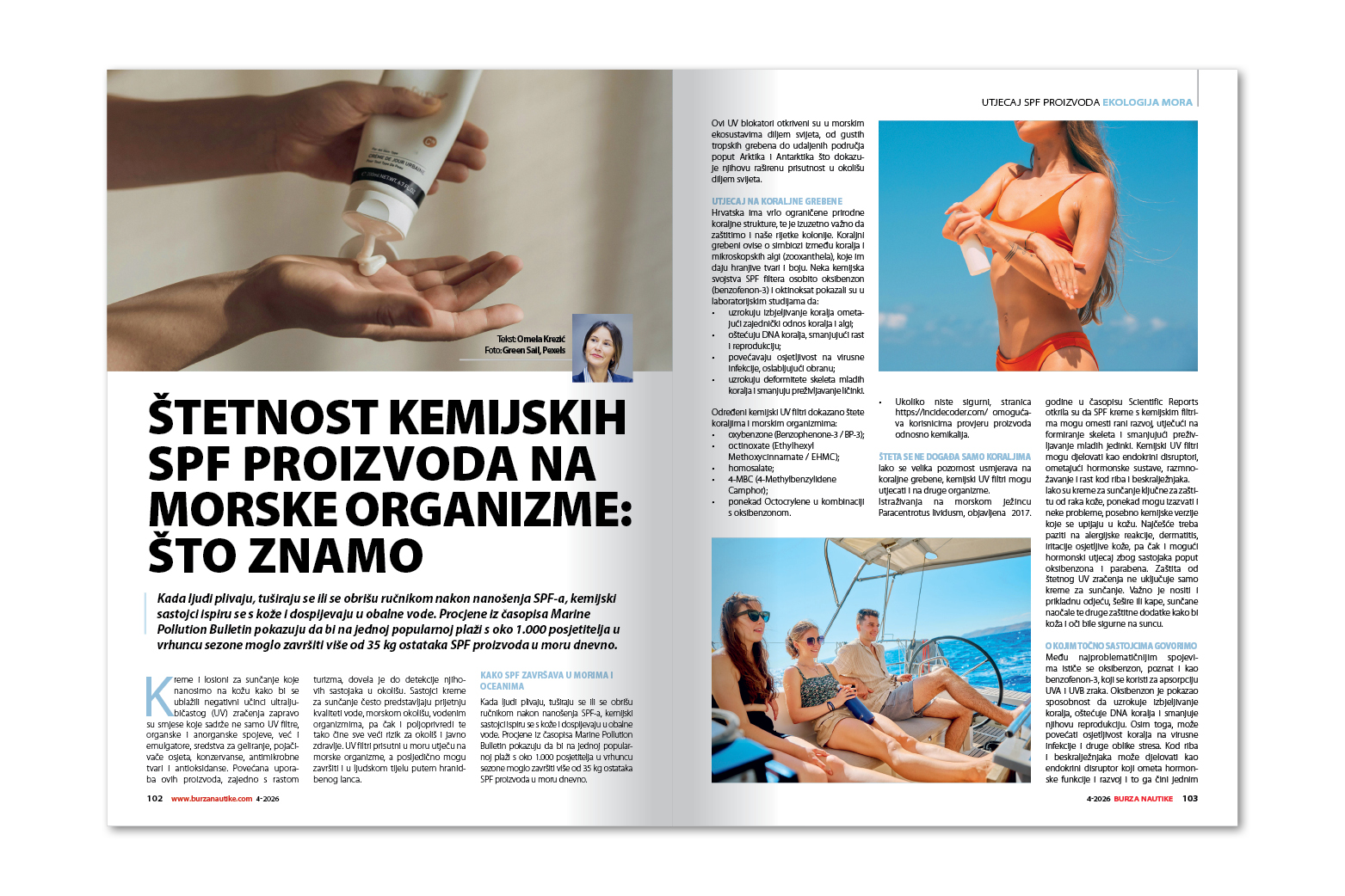 Povećana količina krema i losiona za sunčanje dovela je do detekcije njihovih sastojaka u okolišu. Po nekim procjenama u moru i obalnim vodama u vrhuncu sezone završi više od 35 kg SPF ostataka na broj od 1000 ljudi.
