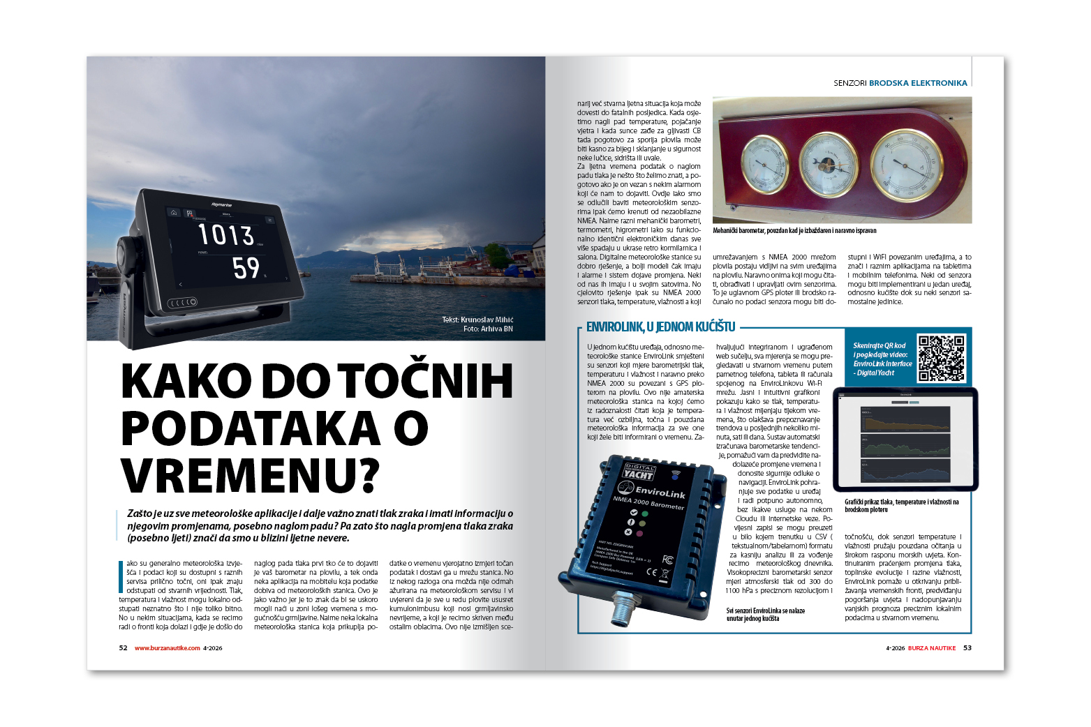 Tlak, temperatura i vlažnost koju prikupe senzori na plovilu puno su točniji od podataka iz raznih servisa i aplikacija. Za prognozu vremena ovo je najsigurniji način jer daje lokalno prikupljene podatke.