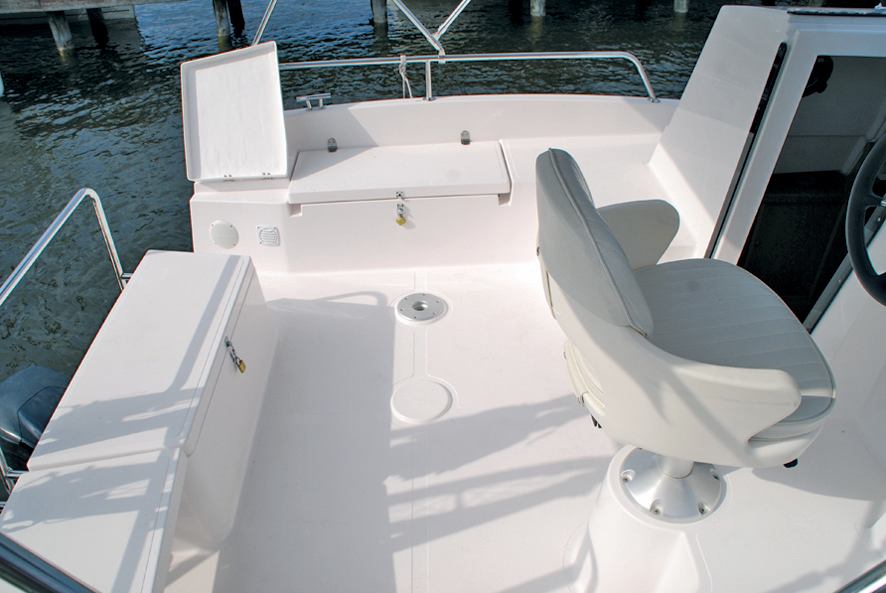 Ovo je jedna od onih barki koja jednostavno sraste s obalom. Zato se na Nexus 850 može ući sa svih strana, bez obzira na to kako je privezan. U pramcu to znači dovoljno veliki špirun, kod kojega svakako treba pohvaliti rješenje sa sidrom koje se nalazi ispod špiruna, a ne po sredini kako je to čest slučaj. Na taj način je cijeli špirun posvećen sigurnom koraku. Samo je pramac zatvoren ogradom, no iznadprosječno široki bočni prolazi s izdignutom razmom omogućuju siguran korak. Krov kabine je položen pod kutom te veći dio površine služi kao sunčalište. Naravno s postavljenim jastucima.
