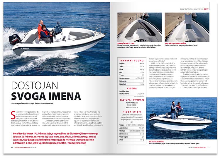 Poseidon Blu Water 170 je otvoreni gliserić, fisherman od nepunih 5 metara koji s novom Hideom od 60 konjskih snaga predstavlja barku po mjeri modernoga čovjeka – malo traži, a mnogo daje.