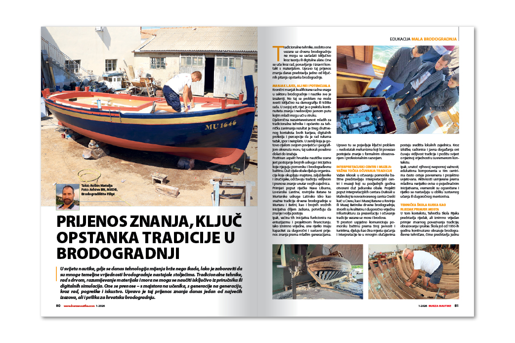 Prijenos znanja je ključ opstanka tradicije u brodogradnji. Danas kada se tehnologija mijenja brže nego ikada lako je zaboraviti da su mnoge temeljne vrijednosti brodogradnje nastajale stoljećima