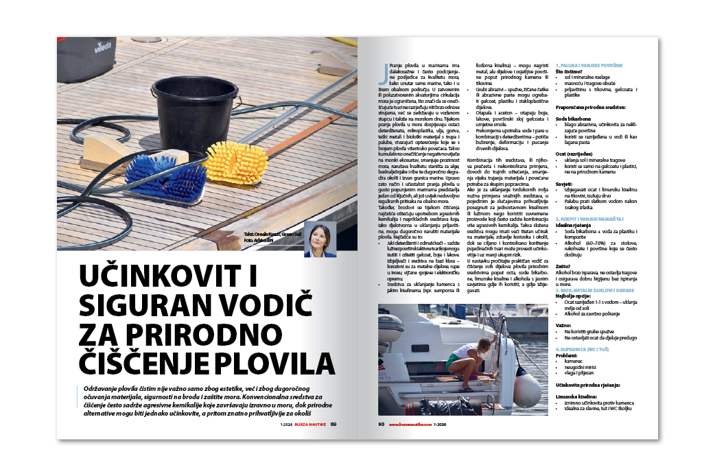 Održavanje plovila čistim nije važno samo radi estetike, već i zbog očuvanja materijala. Prirodne alternative konvencionalnih sredstava za čišćenje mogu biti jednako učinkovite, a pritom znatno prihvatljivije za okoliš