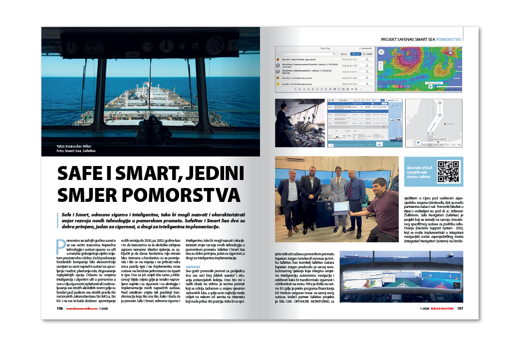 Safe i Smart su smjerovi kojima ide današnje pomorstvo. SafeNav i Smart Sea dva su dobra primjera, jedan za sigurnost, a drugi za inteligentne implementacije