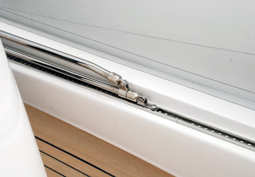 Ovaj gumenjak nema klasičnu skipersku sjedalicu ili klupu, već je tu nešto viši sanduk bez naslona čija gornja tapecirana ploha služi kao oslonac za stražnjicu. Izvrsno rješenje koje u kombinaciji s kolom kormila smještenim na uzdužnoj osi i snažnim motorom jurnjavu i izvođenje svakakvih vratolomija čini zabavnim i ponajprije sigurnim. Tapecirana gornja ploha otvara se prema natrag i kroz taj se otvor pristupa suhom spremištu zapremnine stotinjak litara. Na bočnim se stranama te polusjedalice nalaze dva manja rukohvata, dok je na stražnju stranu montiran jedan veći koji služi kao čvrsto i sigurno uporište putnicima na stražnjoj klupi.