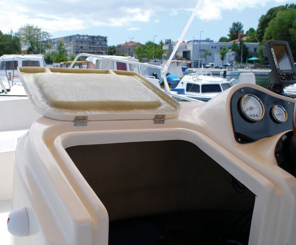 Ono što ranije nismo spomenuli, Vegliatura 6 se isporučuje s brodskim ili s izvanbrodskim motorom, kakva je bila i ova testirana. Iako je dizajnerski vrlo zahtjevno na brodicu oble krme ugraditi izvanbrodski motor, u ovom slučaju moramo primijetiti da je škaf motora vrlo skladno ukomponiran. Sagledamo li sve navedeno možemo samo konstatirati kako kokpit Vegliature nudi puno više no što se to na prvi pogled čini. Prije svega tu mislimo na prostrane radne površine, ali ništa manje bitno nije niti spremište, odnosno mala kabinica skrivena u konzoli. To ovu brodicu čini vrlo interesantnom i za komercijalne svrhe, čega je svjestan i proizvođač pa je vrlo susretljiv kad su u pitanju želje i potrebe potencijalnih kupaca.